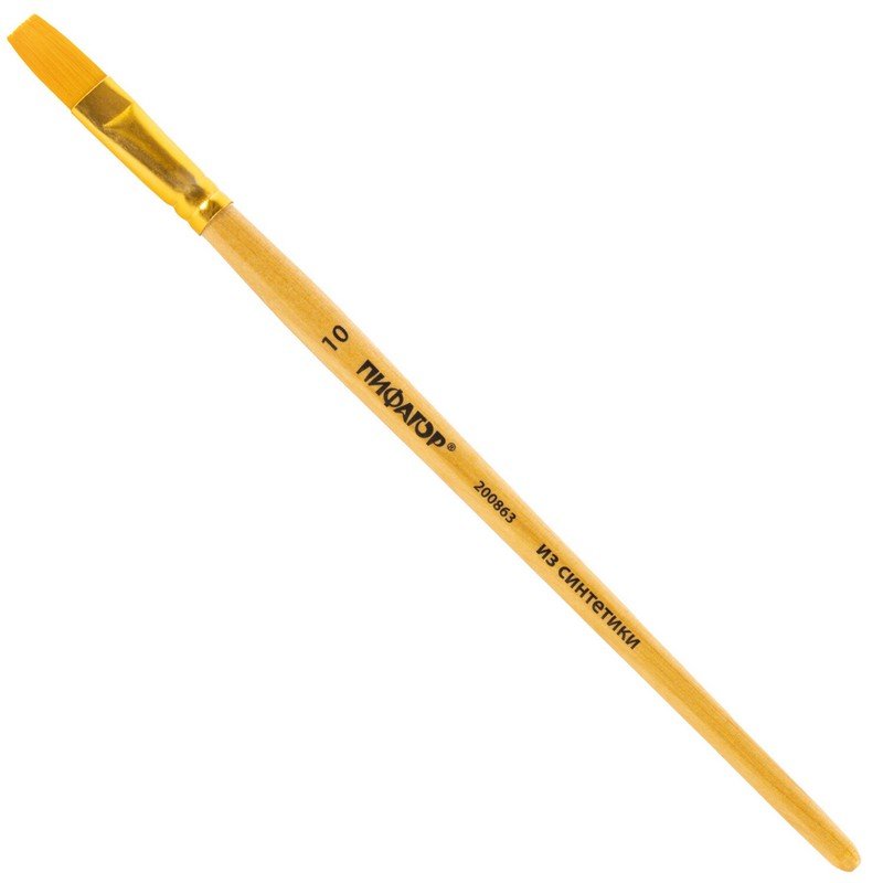 Кисть ПИФАГОР, СИНТЕТИКА, плоская, № 10, деревянная лакированная ручка, с колпачком, пакет с подвесом, 200863