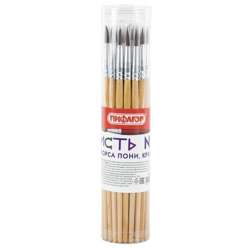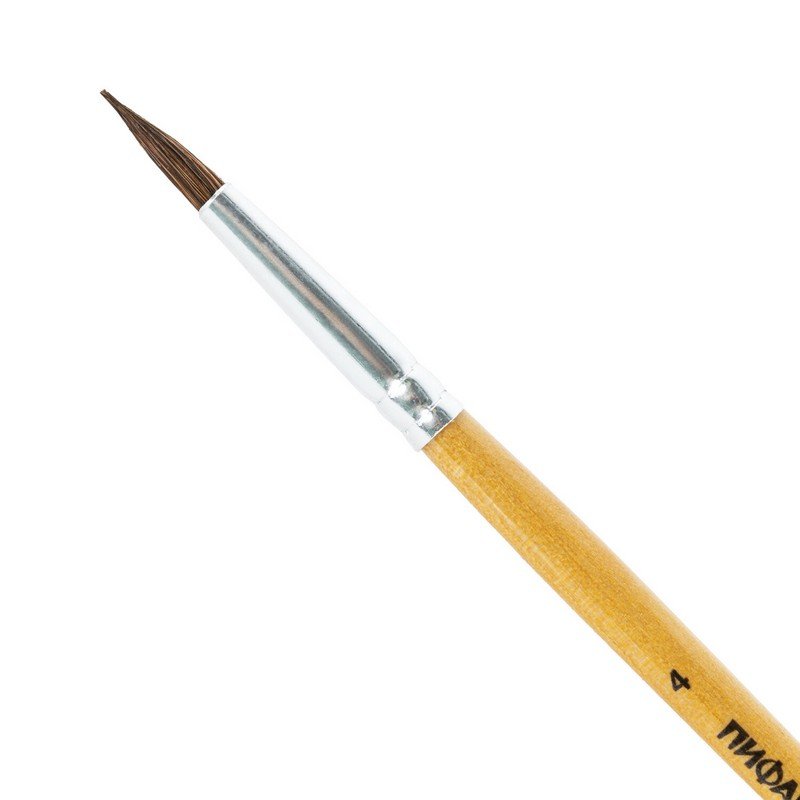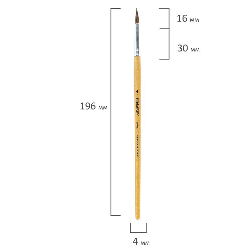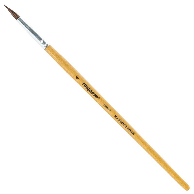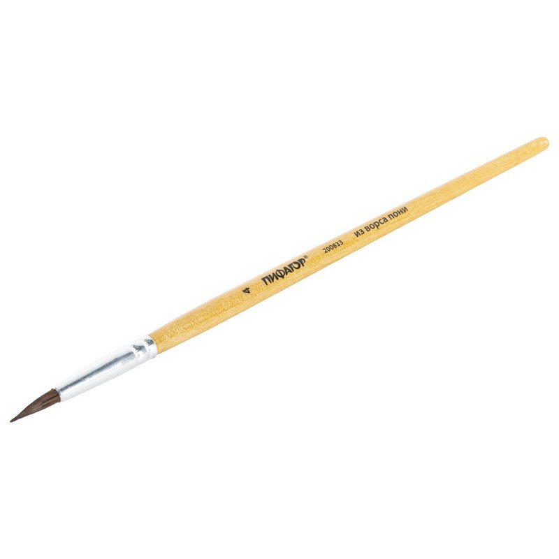Кисть ПИФАГОР, ПОНИ, круглая, № 4, деревянная лакированная ручка, с колпачком, 200833