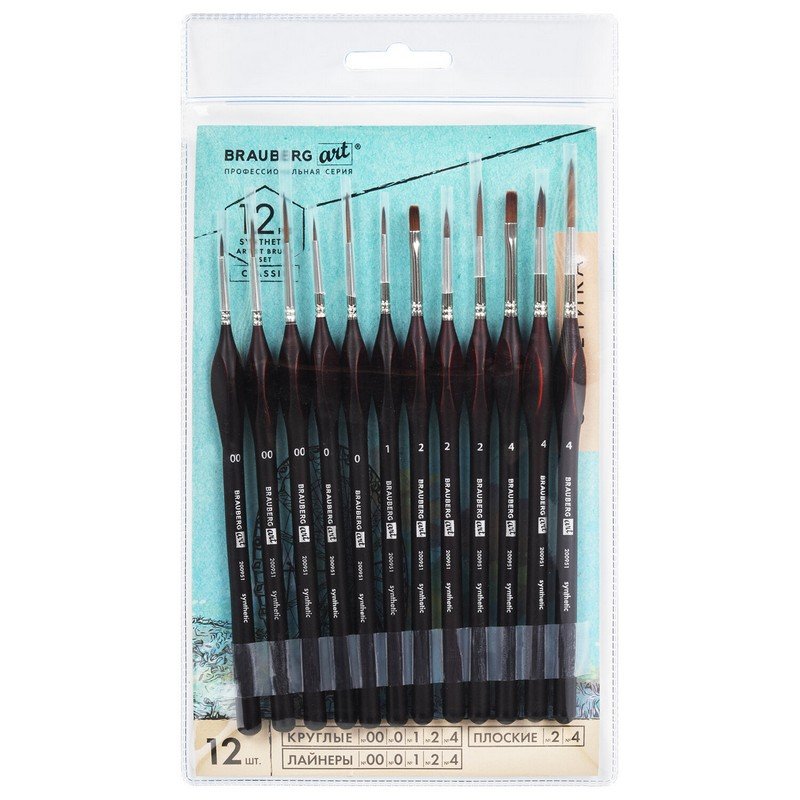 Кисти художественные набор 12 шт., синтетика, BRAUBERG ART CLASSIC, ЭРГОНОМИЧНЫЕ, 200951