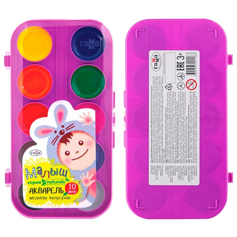 Краски акварельные ГАММА "Малыш Naturals", 10 цветов, пластиковая коробка, 216002