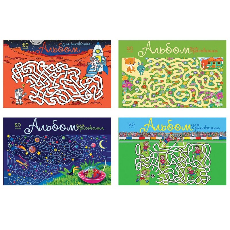 Альбом для рисования, А4, 20 л., скоба, TWIN лак, ПЗБМ, 205х295 мм, "Лабиринт" (4 вида), 049340