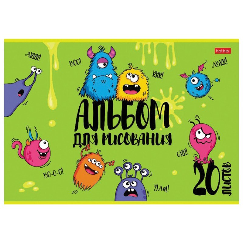 Альбом для рисования, А4, 20 л., скоба, обложка картон, выборочный лак, HATBER, 205х290 мм, "Монстрики" (5 вид
