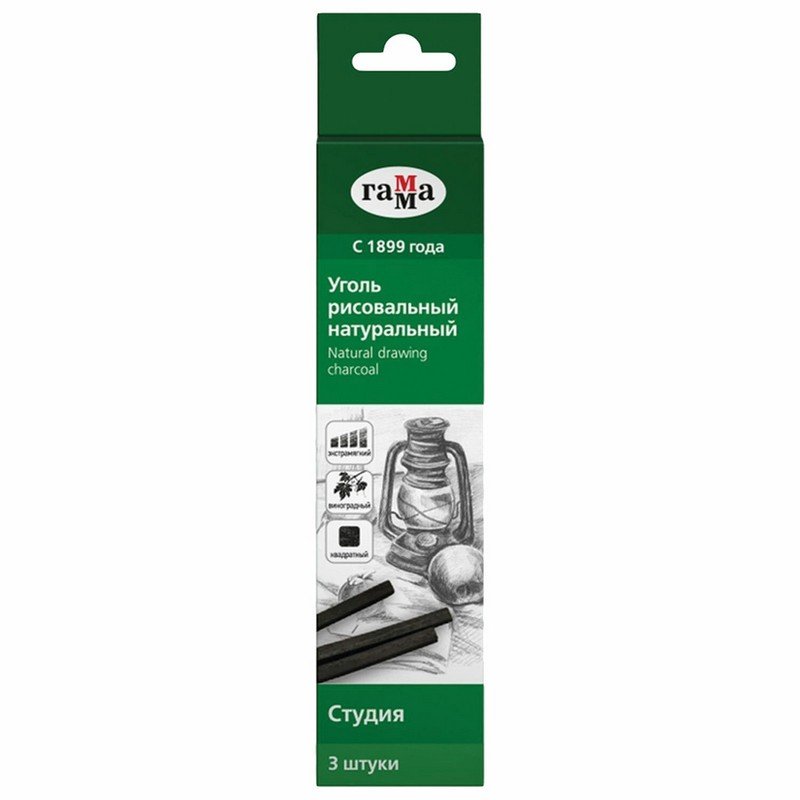 Уголь рисовальный ГАММА "Студия", НАБОР 3 шт., виноградный, экстрамягкий, квадратный, 080219_01