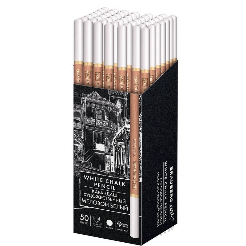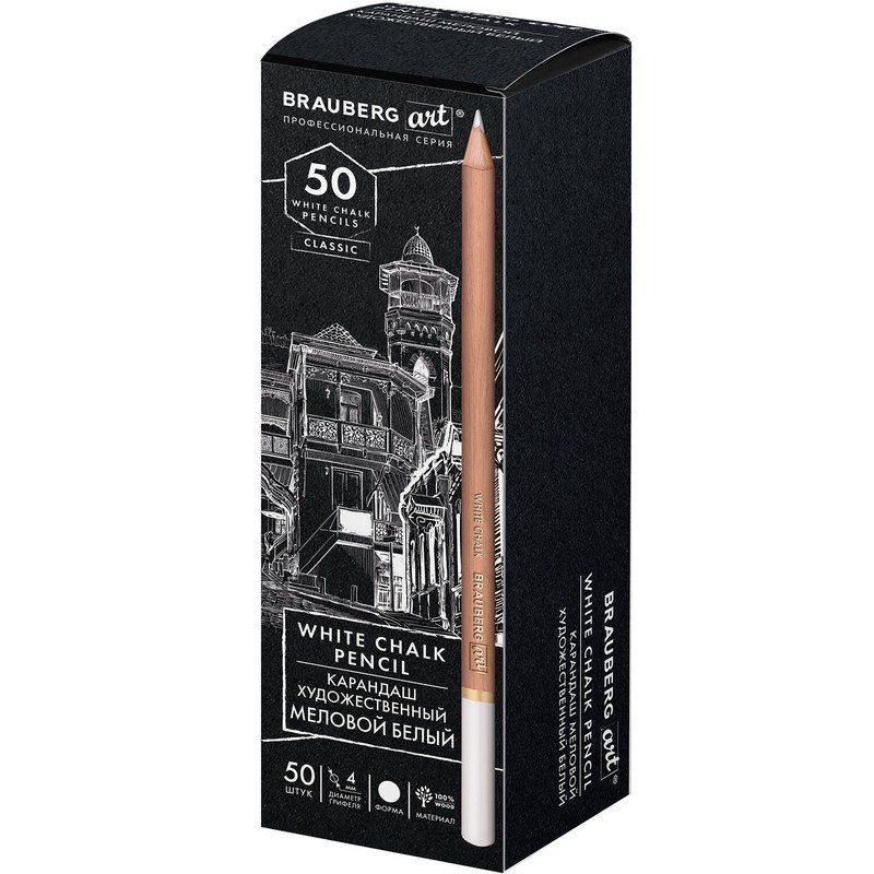 Карандаш МЕЛОВОЙ художественный белый, 1 штука, грифель 4 мм, BRAUBERG ART CLASSIC, 181922