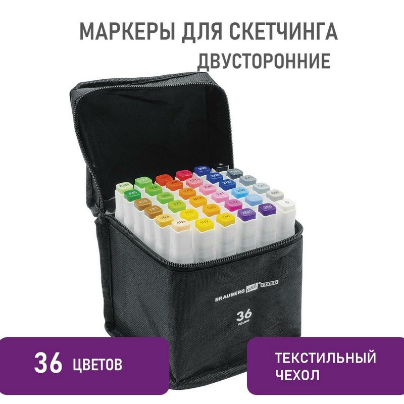 Маркеры для скетчинга двусторонние BRAUBERG ART DEBUT "WHITE", НАБОР 36 шт., чехол, 152141