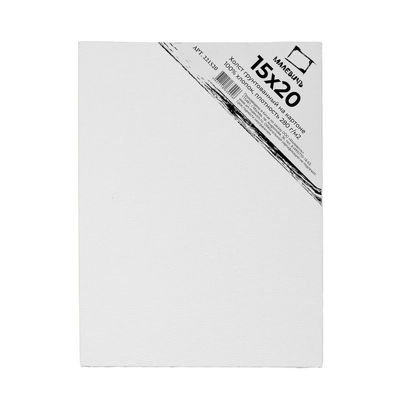 Холст на картоне Малевичъ, 15х20 см. Отличный выбор для студентов и мастеров-художников. Представляют собой профессионально натянутые на картон толщиной 3 мм грунтованные мелкозернистые холсты из натурального хлопка плотностью 280 г/кв. м, позволяющие сразу же приступить к работе. Такие полотна дешевле и прочнее холстов на подрамнике и особенно удобны для работы на пленэре.