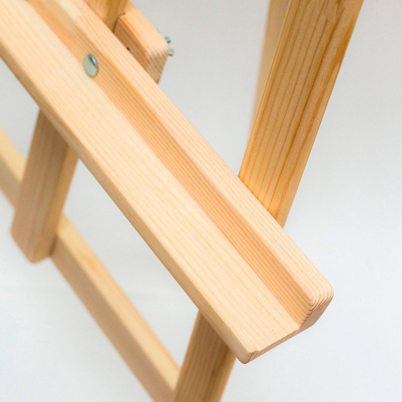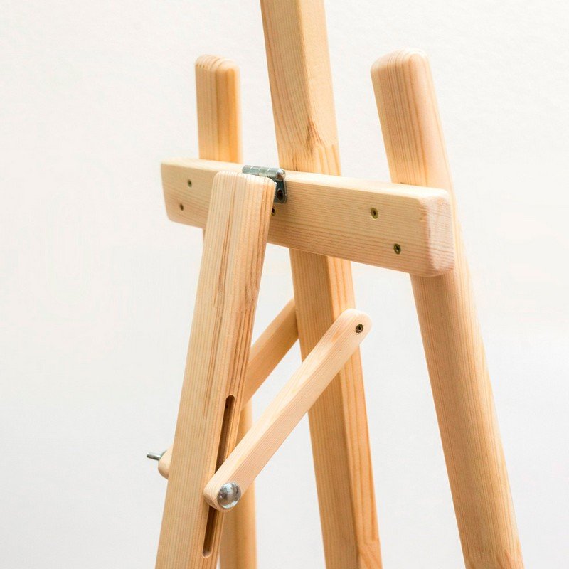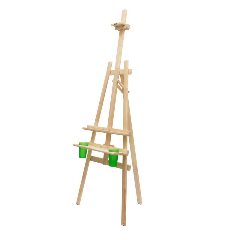 Мольберт Лира "Комфорт" разборный. Мольберт Лира классической конструкции из натурального дерева. Угол наклона опорной ноги можно изменять, высота полки и фиксатора холста также регулируется. Оснащен дополнительной широкой полкой для инструментов с отверстиями для стаканов с водой или кистей (стаканы входят в комплект). Вторая полка также позволяет работать с двумя холстами одновременно (например при создании копий). Бюджетный вариант мольберта с улучшенной функциональностью. Высота от 150 до 170 см, ширина 55 см, глубина от 20 до 120 см. Вес 5,1 кг. Ширина полки 55 см, глубина полки 3,5 см. Глубина дополнительной полки 11,5 см. Максимальная высота холста 120 см.