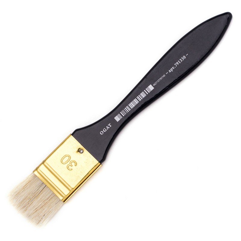 Флейц из щетины Малевичъ "Henry", №30. Кисть серии "Henry" производится из натуральной свиной щетины самого высокого качества (Interlocked Chungking bristle). Благодаря расщепленному кончику кисть хорошо впитывает и разносит краску. Короткая выставка позволяет делать короткие, упругие мазки и работать с густой краской. Кисть на классической длиной ручке из березы покрытой черным лаком, обойма из латуни с покрытием никель-хром. Идеальна для пастозной живописи маслом и акрилом. Номер кисти соответствует диаметру в мм.