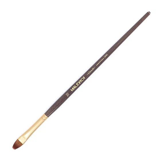 Кисть из синтетики Claude, плоскоовальная №10. Кисть из серии Claude изготовленна из синтетики золотистого цвета (Shining golden synthetic) имитирующей ворс колонка. Это ворс средней жесткости, который отлично подходит для густых красок таких как масло, акрил, гуашь, темпера. Кисть выполнена в благородной цветовой гамме. Матовая золотая втулка, коричневый прозрачный лак и лаконичная маркировка делают эту кисть не только надежным художественным инструментом, но и красивым аксессуаром. Кисть держит свою форму даже при частом использовании, ворс прочно закреплен, а втулка не расшатывается со временем. Ручка кисти оптимальной средней длины - 18 см. Длина ворса (выставка) короткая. Номер кисти соответствует диаметру в мм. Серия имеет самое большое разнообразие размеров и форм среди ассортимента Малевичъ.