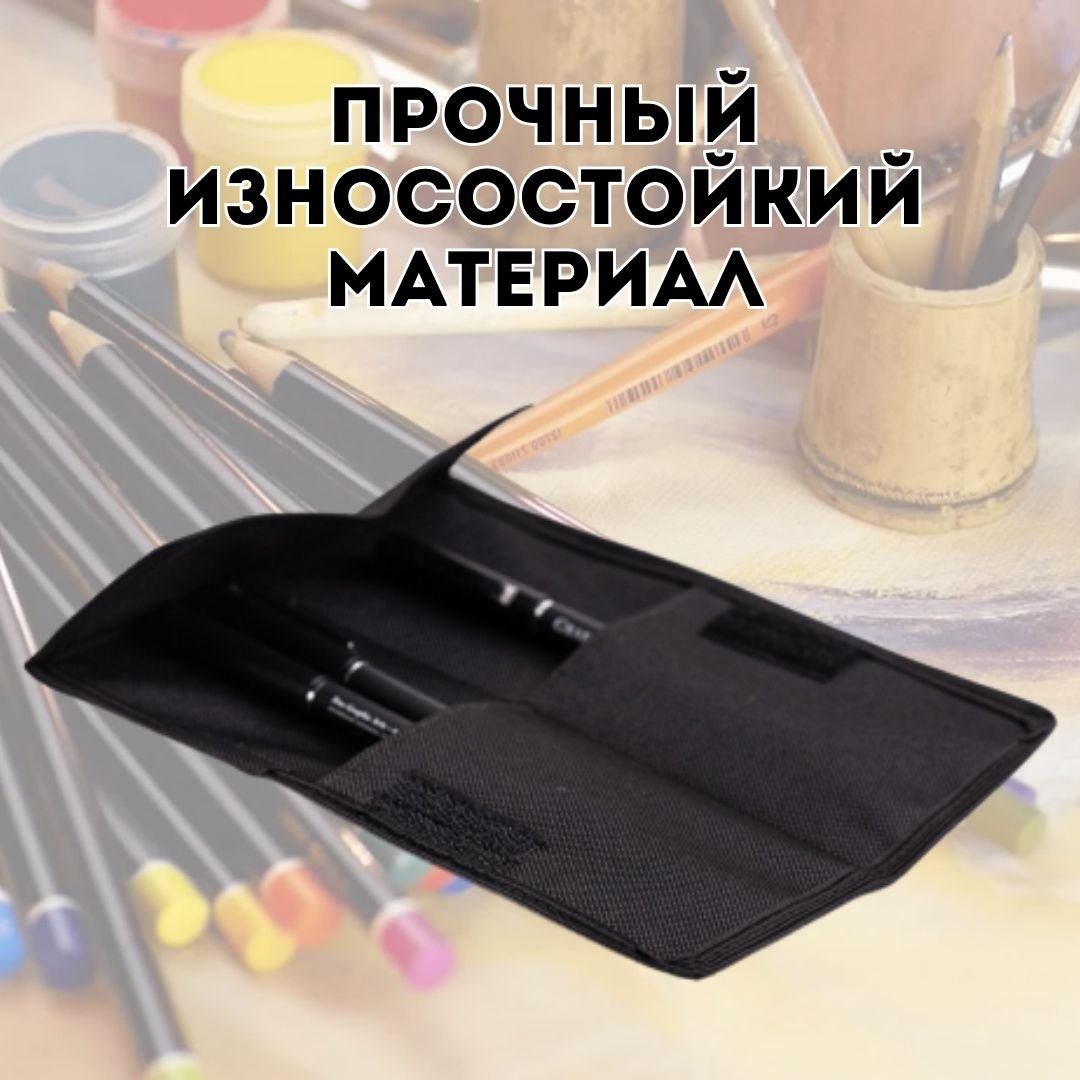 Пенал карманный для карандашей и ручек Малевичъ, черный. Компактный пенал для карандашей, ручек или маркеров. Материал износостойкий и не боится воды. Закрывается на липучку.