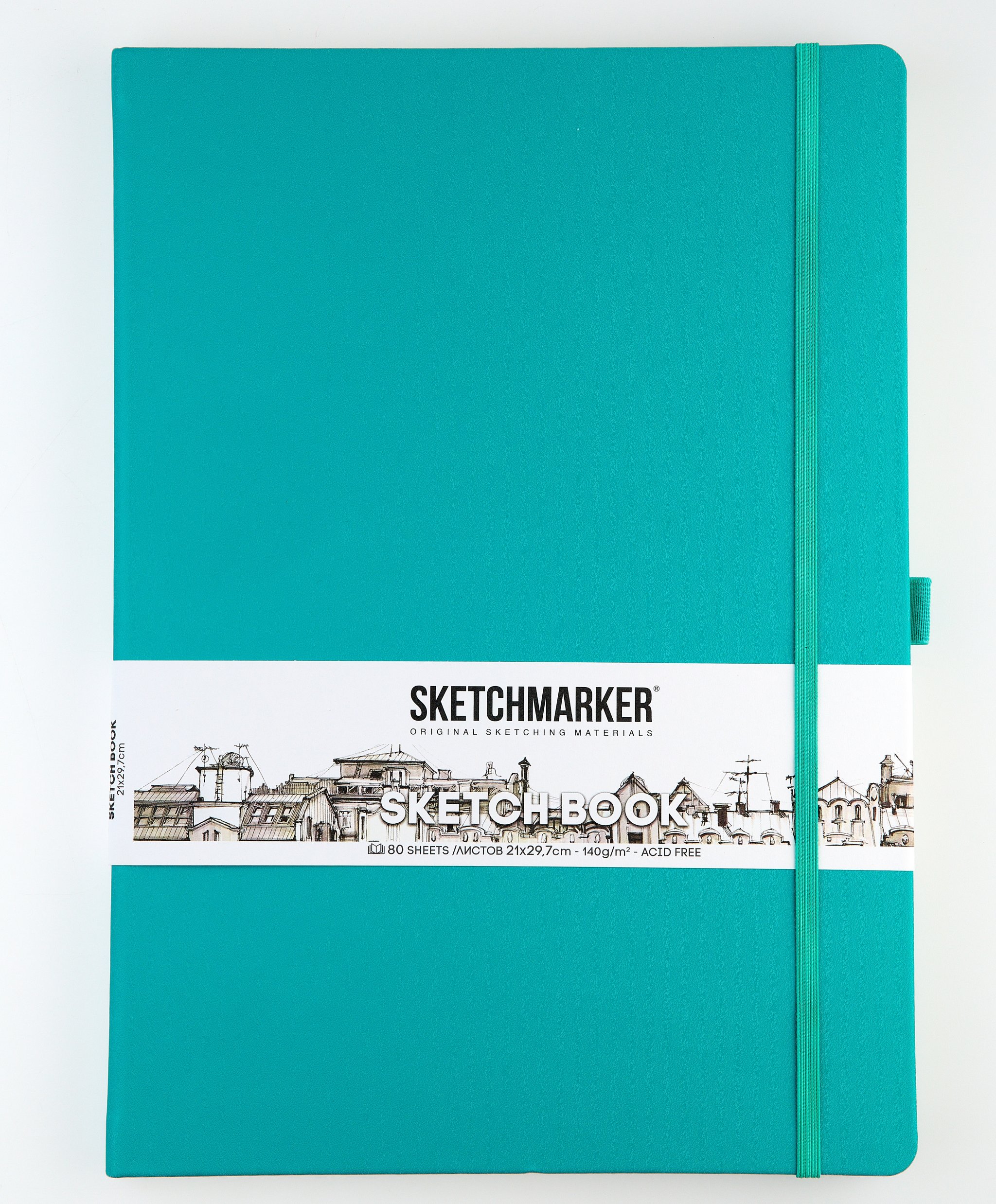 Блокнот для зарисовок Sketchmarker 140 г/кв.м 21х29.7см 80л твердая обложка, изумрудный