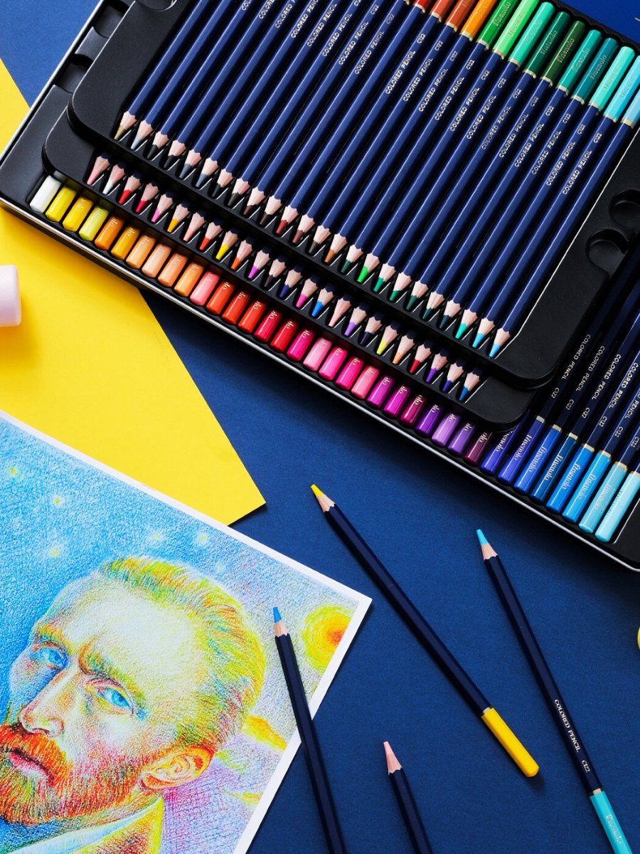 Наконечник карандаша окрашен в тот же цвет, что и сам грифель, что упрощает подбор нужного оттенка. Остроконечный наконечник выдерживает интенсивное давление, при этом оставляя мягкие и четкие линии. Эти карандаши отлично подходят для создания многослойных рисунков методом лессировок, где каждый новый слой наносится с увеличивающимся нажимом.