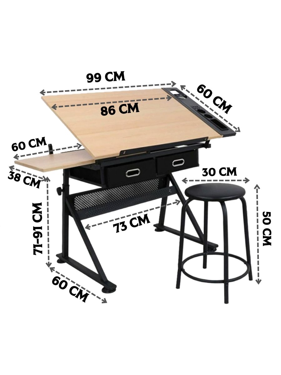 Профессиональный стол художника: регулировка высоты/наклона, органайзеры, полка + табурет в комплекте!