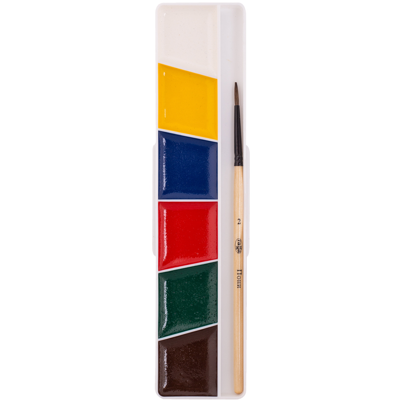 Краски акварельные для школы и творчества. Упаковка - пластиковая коробочка, в наборе есть кисть.